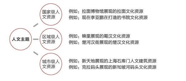 依托于人文資源的不同,發(fā)展出不同的人文主題方向:歷史民俗、人文建筑、人文服飾、人文飲食、文學(xué)或教育、宗教文化等等。本次研究主要通過案例分析,說明歷史民俗、人文建筑、人文飲食三個方向的人文旅游主題商業(yè)的操作方法和實現(xiàn)前提。